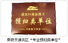 榮獲天津關(guān)區(qū)“專業(yè)預(yù)歸類單位”